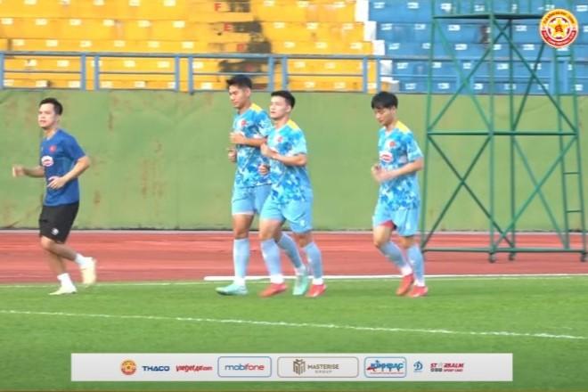 Cụ thể, 3 cầu thủ trẻ thuộc biên chế PVF CAND là Xuân Bắc, Thanh Nhàn và Hiểu Minh được bố trí tập riêng cùng với bác sỹ ĐT Việt Nam – Trần Huy Thọ. Bộ 3 cầu thủ này chạy nhẹ nhàng khoảng 5 vòng sân trước khi được bác sĩ hướng dẫn các bài tập về sức bền ở một phần góc sân.