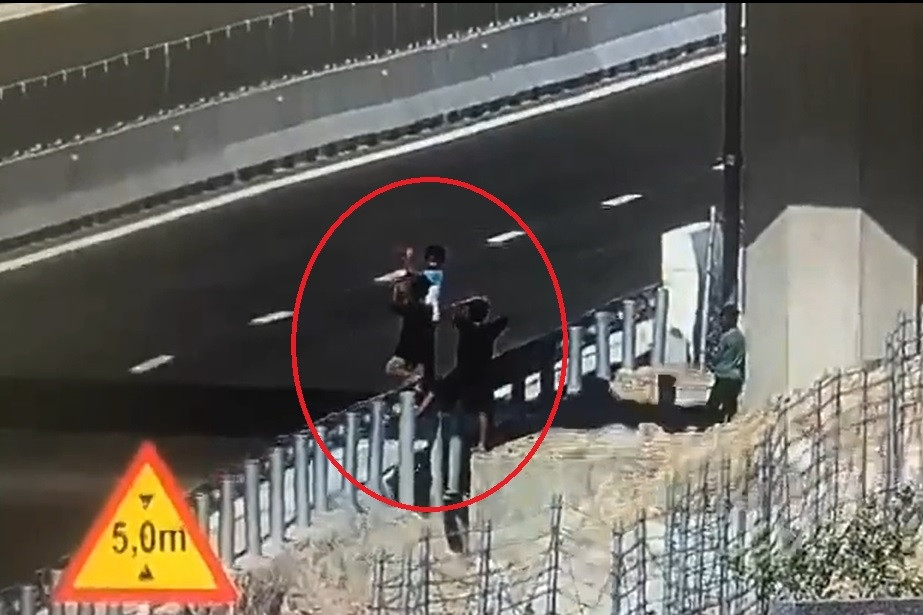 Hình ảnh nhóm thiếu niên đi vào cao tốc do camera ghi lại.
